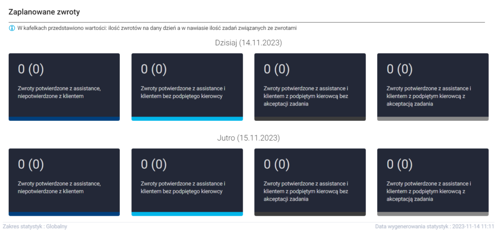 - Zwroty potwierdzone z assistance i klientem z podpiętym kierowcą bez akceptacji zadania ■
