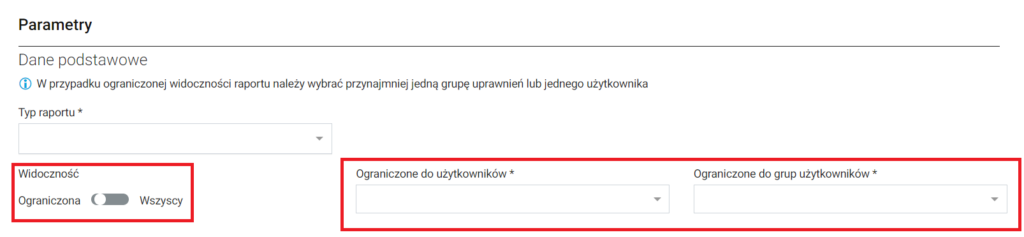 Poniżej znajduje się możliwość ustawienia widoczności, można ograniczyć do wybranych użytkowników i grup. Istnieje też możliwość aby raport był widoczny dla wszystkich, należy tylko przeciągnąć lewy dolny krążek.