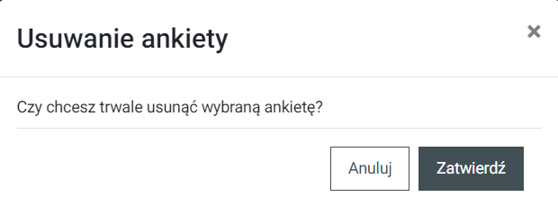 Po naciśnięciu na przycisk Usuń pojawia się możliwość usunięcia wybranej ankiety.