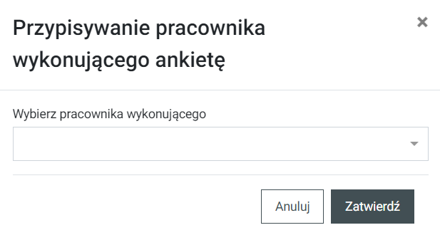 Po kliknięciu na przycisk Przypisz pojawia się możliwość przypisania pracownika wykonującego ankietę.