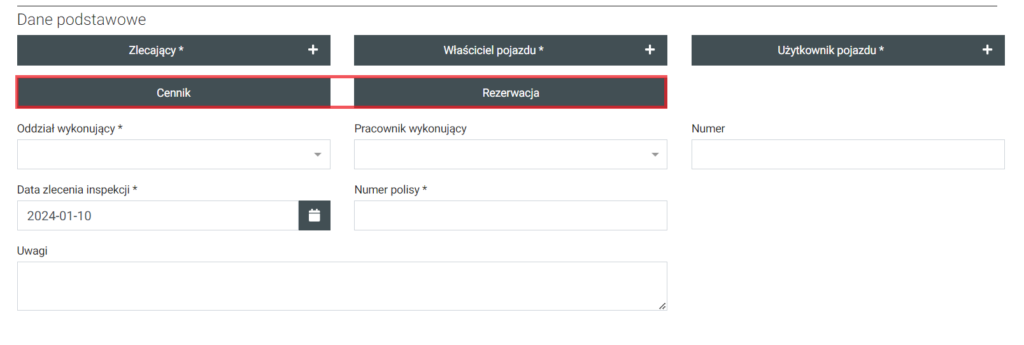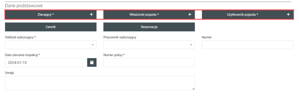 | Data zlecenia inspekcji | W tym polu należy wybrać datę zlecenia inspekcji |