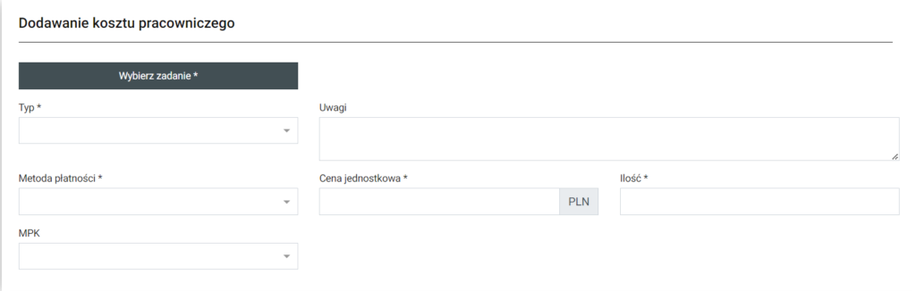 | Uwagi | W kolejnym polu można wpisać wagi do tworzonego kosztu pracowniczego ale ie jest to wymagane. |
