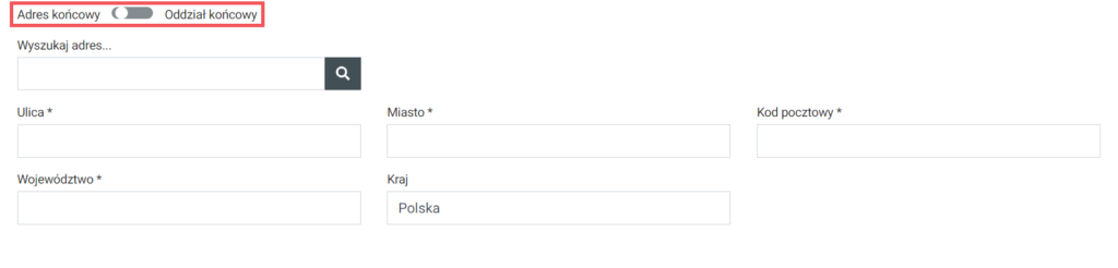 Jednak istnieje możliwość aby pojazd został zostawiony w innym miejscu????, w takim należy przeciągnąć krążek na adres końcowy. Po wykonaniu tej czynności zostają wyświetlone luki w które należy wpisać adres miejsca, w którym pojazd zostanie pozostawiony.