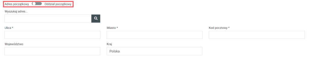Początkowo krążek jest przełączony na oddział początkowy, w takiej sytuacji należy wybrać oddział, z którego pojazd rozpocznie swoją trasę.
