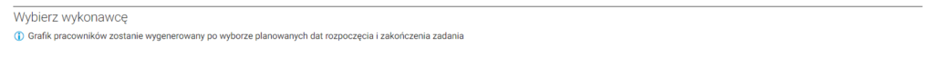 W kolejnym polu należy będzie wybrać wykonawcę, aby lista pracowników została wyświetlona należy wcześniej wybrać przedział czasowy zadania i system automatycznie wyświetli listę z możliwymi pracownikami do przypisania