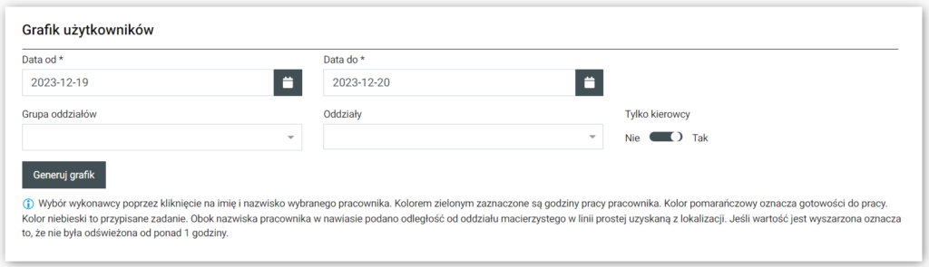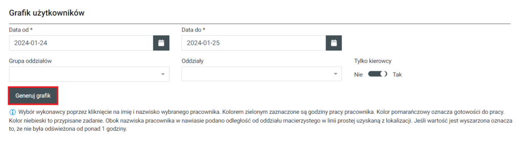 Po naciśnięciu na przycisk Generuj grafik zostają wyświetlone kolejne dwie sekcje.