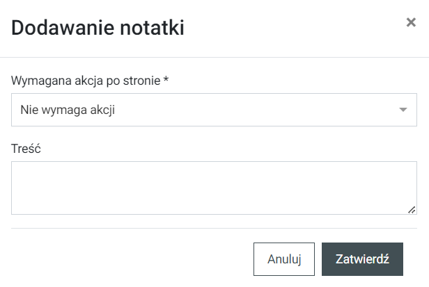 Po wybraniu opcji Dodaj zostaje wyświetlona tabela w której