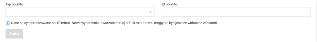 W dziale historia zmian znajduje się możliwość wyszukania informacji dotyczących zmian w typach obiektów.