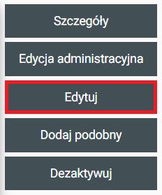 | Edycja administracyjna | Po kliknięciu na ten przycisk zostajemy przeniesieni do Home / Cenniki / Usługi dodatkowe / Edycja gdzie można będzie edytować wszystkie cenniki wynajmu niezależnie od ich stanu |