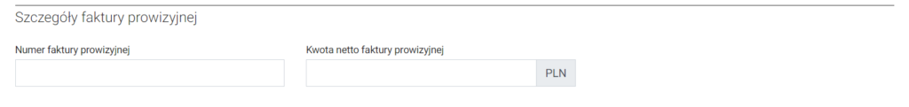 W ostatniej sekcji można wpisać szczegóły faktury prowizyjnej ale nie jest to wymagane