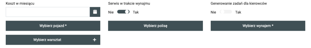 Po przełączeniu krążka “Serwis w trakcie wynajmu” na “tak” trzeba bedzie tez wybrac wynajem.