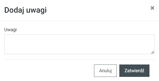 Po wybraniu funkcji Uwagi pojawia się możliwość dopisania uwag do wybranego elementu z listy transakcji kart paliw.