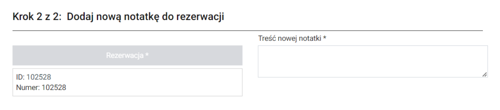W kolejnym kroku znajduje się dołączona wcześniej rezerwacja oraz trzeba wpisać treść nowej notatki.
