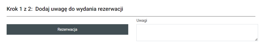 W pierwszym kroku znajduje się funkcja pozwalająca na wybranie rezerwacje z listy oraz możliwość zapisania uwag.