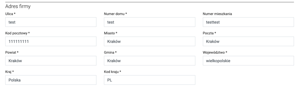 W tej sekcji znajduja sie dane dotyczące naszej firmy, ktore mozna edytowac jeżeli to jest potrzebne.