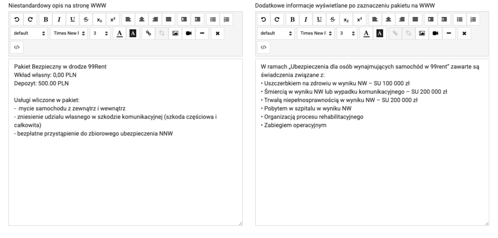 Poniżej znajduje się opcja zapisania niestandardowego opisu na stronę WWW oraz Dodatkowych informacj.