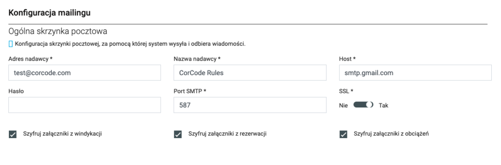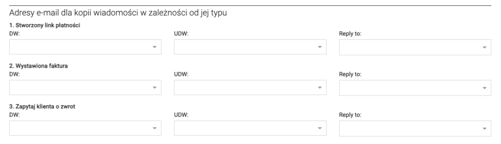Ostatnia sekcja pozwala na ustawienie adresów email, na które będą wysyłane kopie wiadomosci.