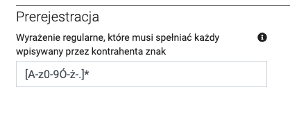 Kolejna sekcja pozwala na ustawienie wyrażeń regularnych jakie muszą spełniać każdy wpisywany przez kontrahenta znak