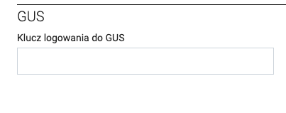 W pierwszej podsekcji można będzie wpisać klucz logowania do GUS.